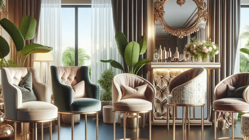 Stylowe wnętrza: tapicerowane hokery i krzesła w klimacie glamour
